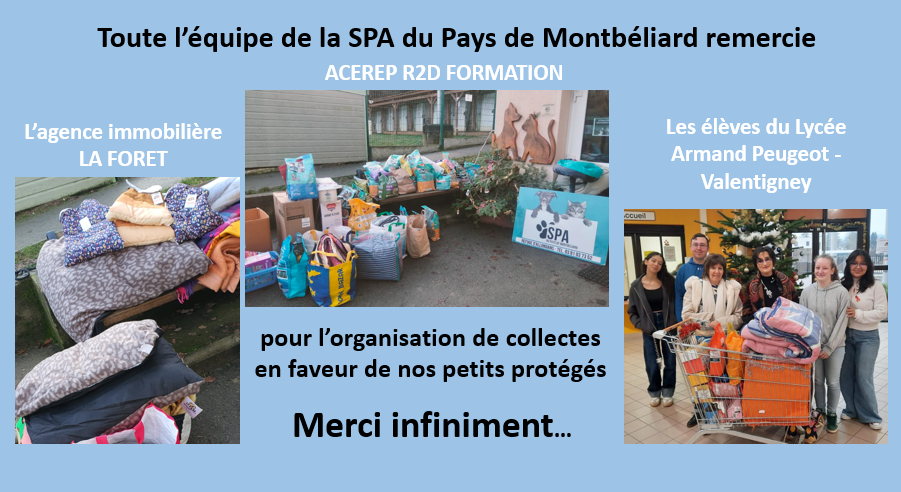 Toute l’équipe de la SPA du Pays de Montbéliard remercie: