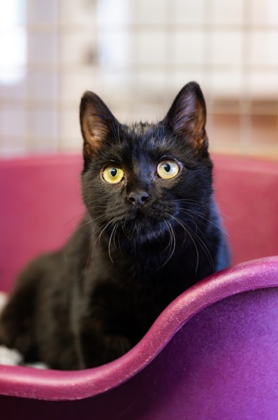 Alfi Description Alfi est un jeune chat noir née juin 2025 Voir également : Bambi – Adopté Flash – Réservé