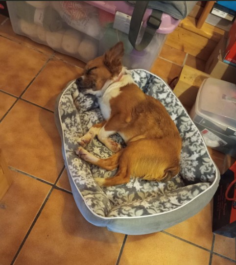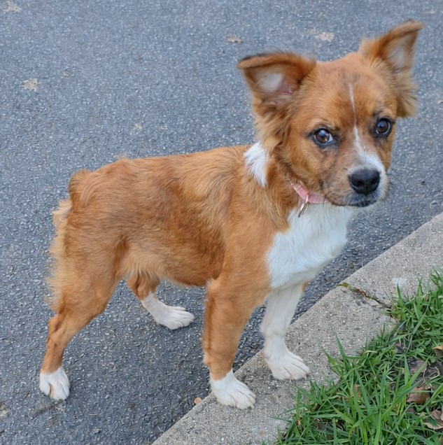Eglantine est une mignonne petite chienne de race commune, née en avril 2025