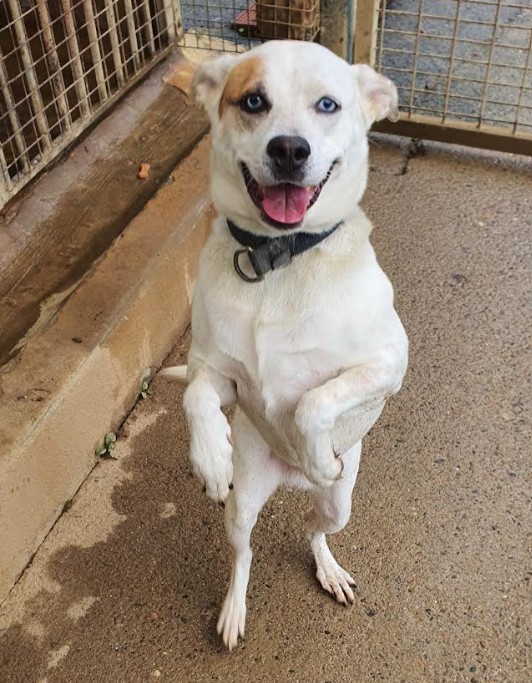Notre gentille Queen vient d’intégrer le refuge et nous pouvons déjà constater qu’elle a beaucoup d’affection à donner : elle adore nous faire la fête et recevoir plein de câlins, toujours joyeuse, c’est aussi un vrai petit clown !