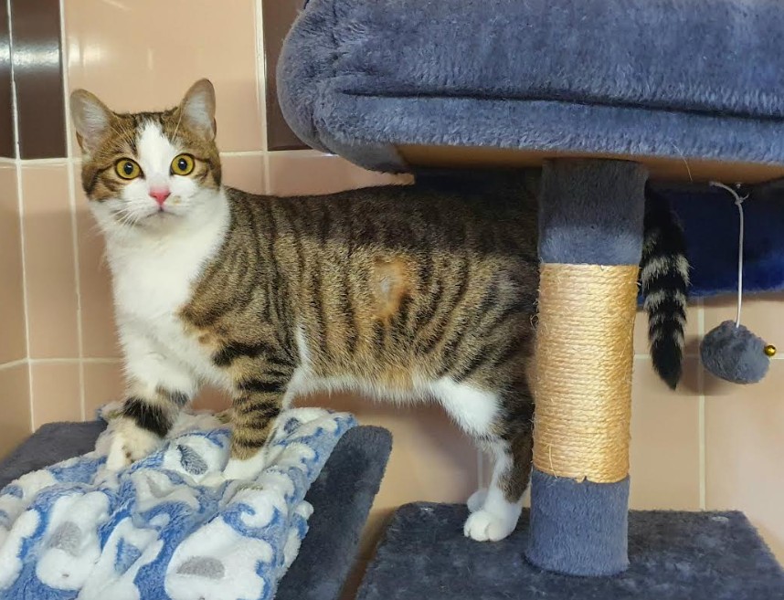 Sally ne semble pas être incommodée par la présence d’autres chats, elle arrive à s’intégrer gentiment parmi eux.