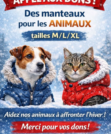 Tous les dons matériels et alimentaires ne peuvent être déposé que durant les horaires d’ouverture du refuge, à savoir de 13h30 à 17h30.